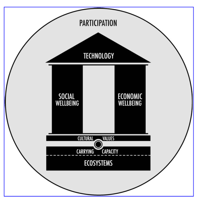 As seen in the Sustainabuild framework (Luthe & Kutzschenbach, 2016) below, a solid and healthy ecological foundation is needed to build our cultural, social, economic, and technological systems on top of. The balance between social and economic values is governed by a societies cultural values. When these cultural values are in balance with the ecosystems a society is based in, then both people and planet prosper and thrive together.